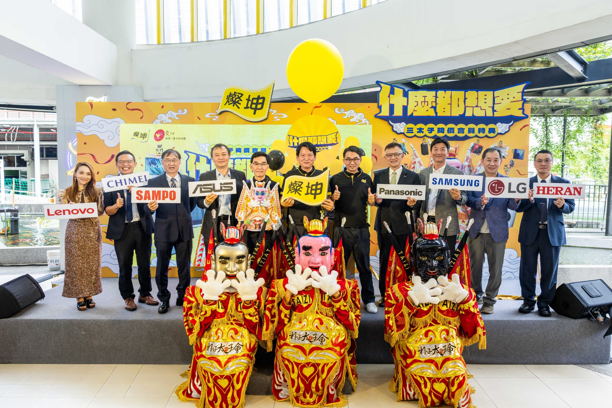 燦坤3C家電看好全民普發一萬元政策上路,特別攜手「朴子電音三太子」聯名推出「什麼都想要」會員特典主題活動,希望透過「燦坤3C家電」的零售場域,串接台灣民俗藝陣,提升品牌公益與文化形象,同時期望透過與嘉義「朴子電音三太子」深度結合,融合傳統與創新,全面提升會員到燦坤的來店體驗,創造一個富有地方藝文兼具文化意涵,同時保有專業與歡樂的消費場域,積極與消費者交心、搏感情,提升會員價值與創造與燦坤3C家電的良好互動,擴大品牌生活感連結。11月6日下午2點也於燦坤內湖旗艦店1樓舉行記者會,由燦坤董事長 林技典引領主管一同出席,更力邀重量級策略合作夥伴卡爾蔡司視力保健部副總經理 周信成、小林鐘錶眼鏡總經理 張騰達與萊爾富便利商店公關長 彭傳璋,還有台灣松下、台灣三星電子、聲寶、台灣樂金電器(LG) 、華碩聯合科技(ASUS)、台灣聯想環球科技(Lenovo)、新視代科技(CHIMEI) 、禾聯碩八大品牌高層代表參與啟動儀式,以及近50家品牌企業高層,共同為今年11月年度大促「什麼都想要」會員特典,隆重揭開序幕。